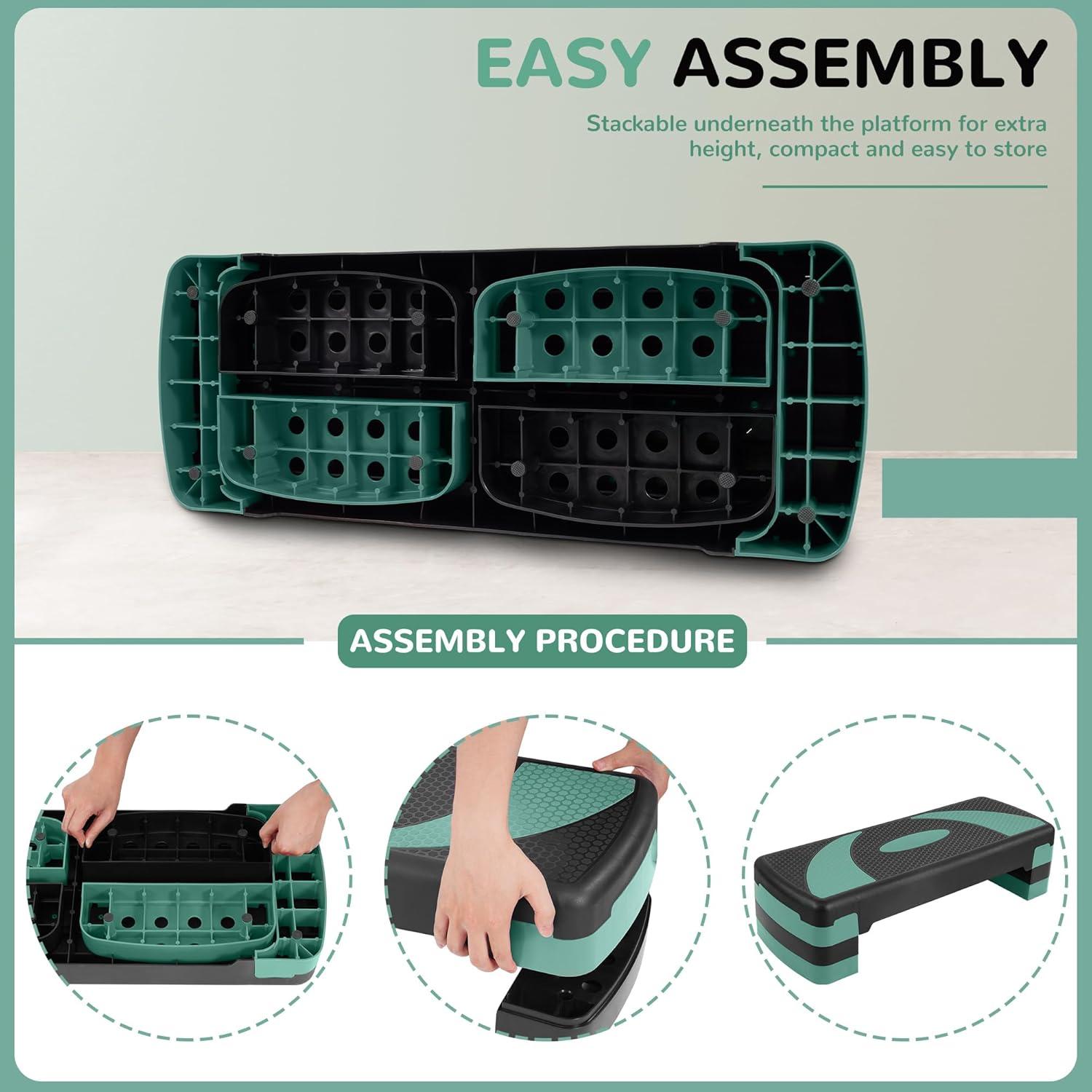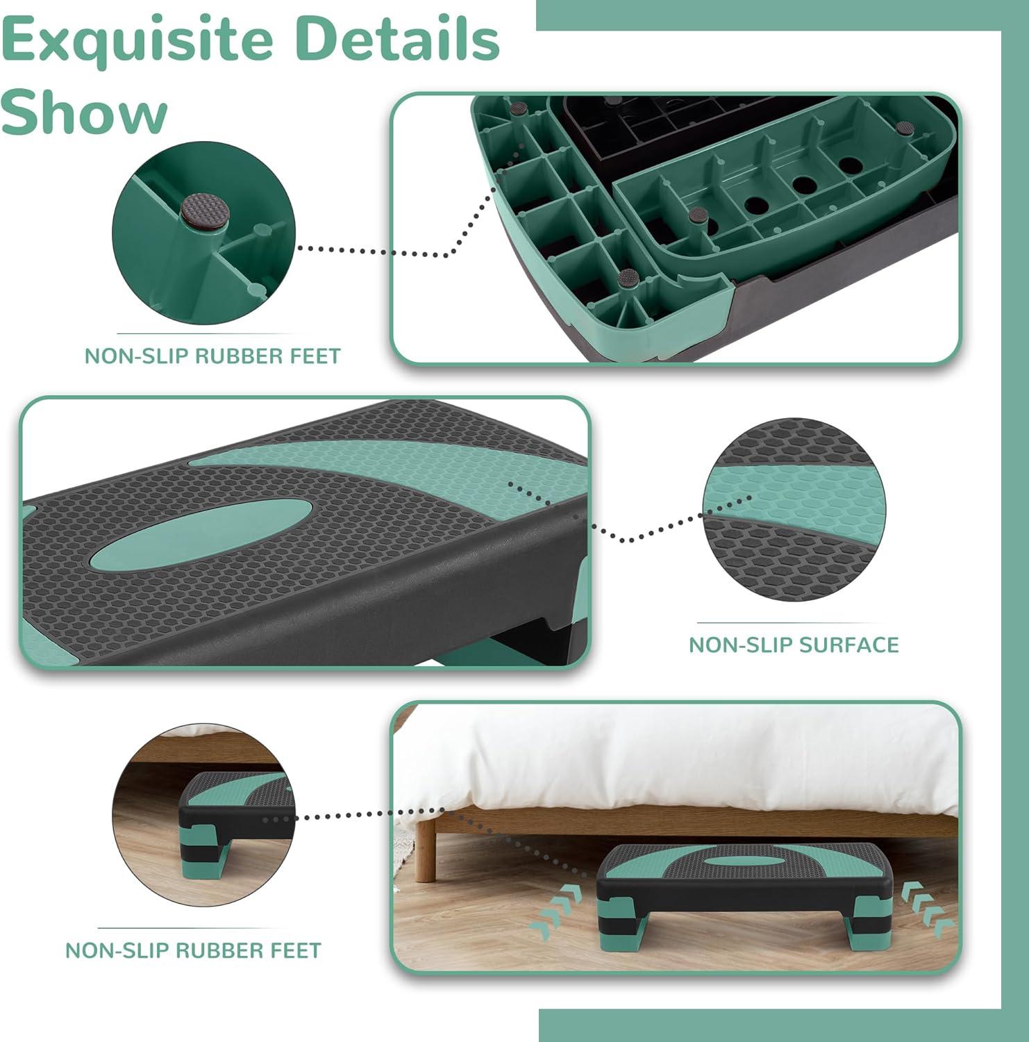 Fitvids Fitvids Step Aerobic Platform, 31″ Exercise Step with 3 levels Adjustable Height, 4 Stackable Risers, Fitness Training Workout Stepper for Home Gym, Cardio Strength(Green Jasper)