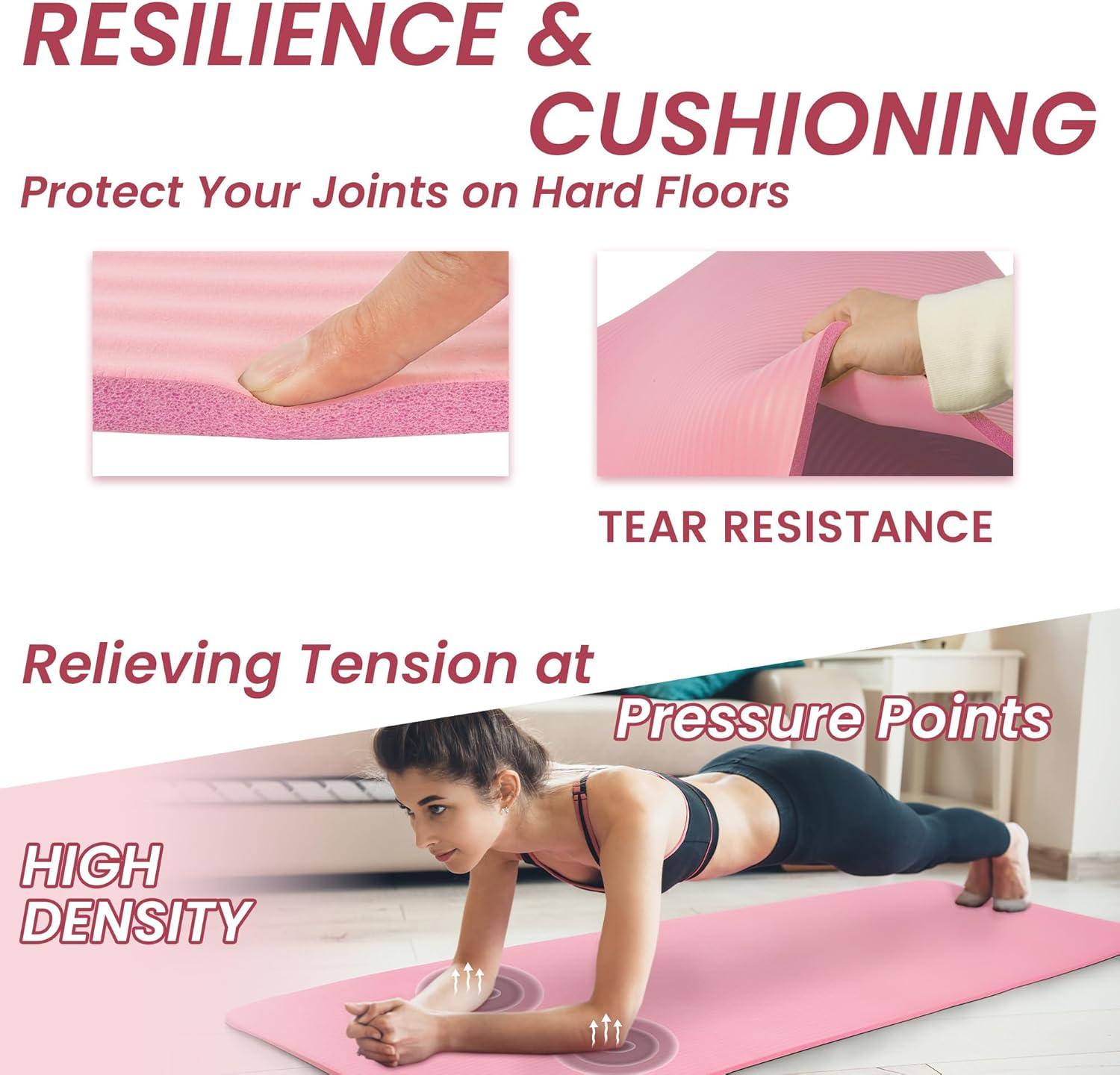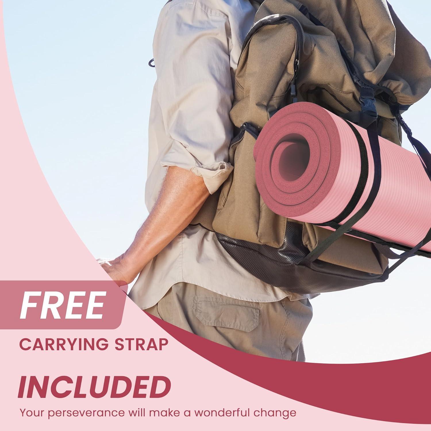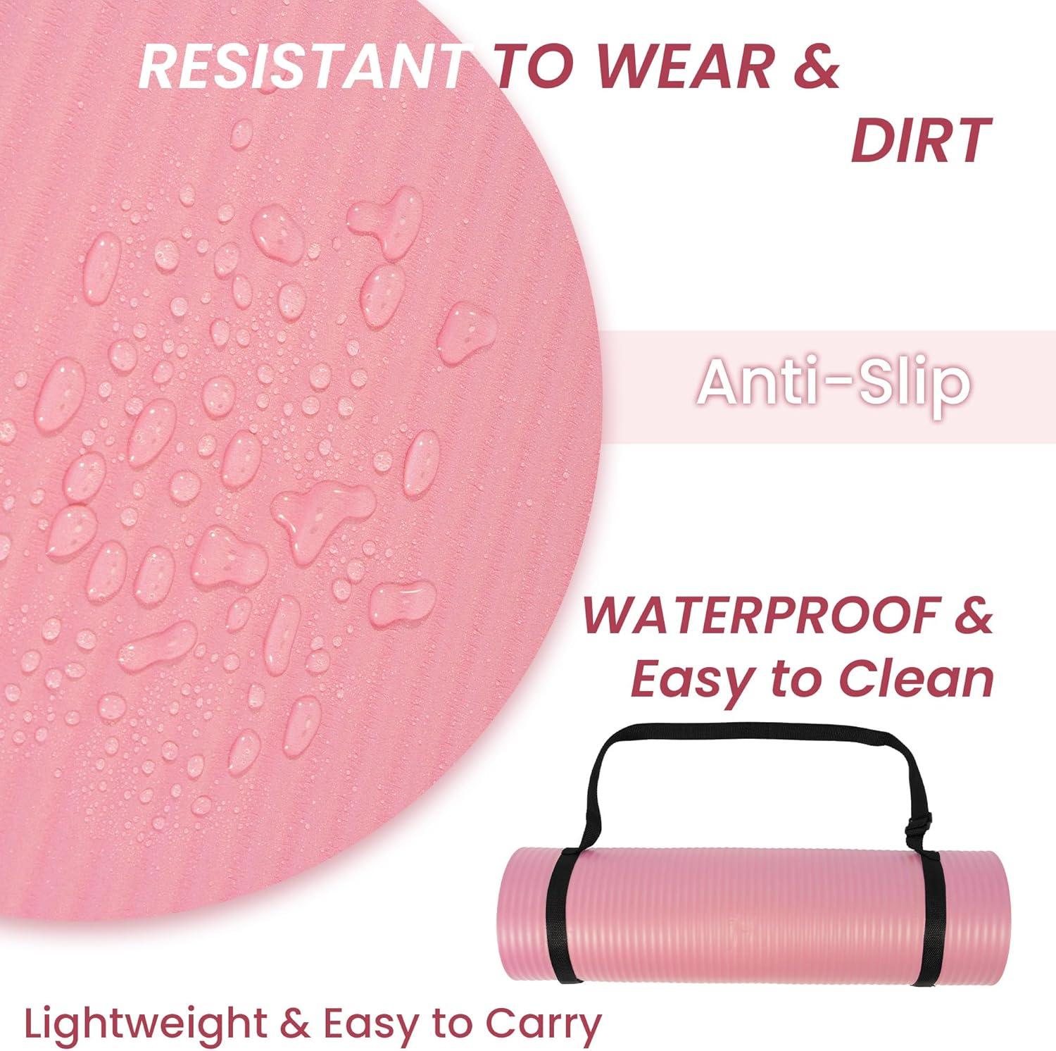 Fitvids Yoga Mat, 1/2-Inch Extra Thick High Density Exercise Mat, Anti-Tear Exercise Yoga Mat with Carrying Strap, Suitable for Various Yoga Exercises(Pearly Pink)