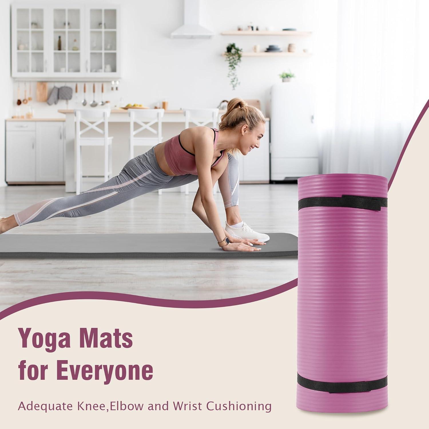 imageFitvids Yoga Mat 1Inch Extra Thick HighDensity Exercise Mat with NonSlip Surface ampamp Carry Strap for Men ampamp Women TearResistant Pilates Workout Mat for Home Gym Floor FitnessDeep Wine