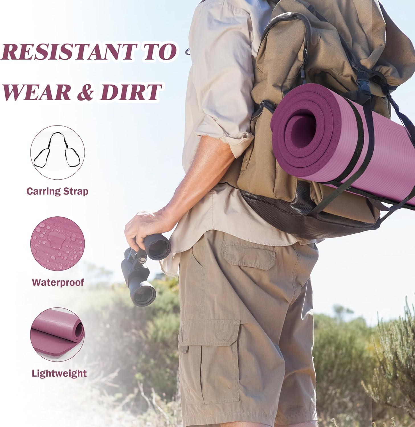 Fitvids Yoga Mat 1-Inch Extra Thick High-Density Exercise Mat with Non-Slip Surface & Carry Strap for Men & Women Tear-Resistant Pilates Workout Mat for Home Gym, Floor Fitness(Deep Wine)