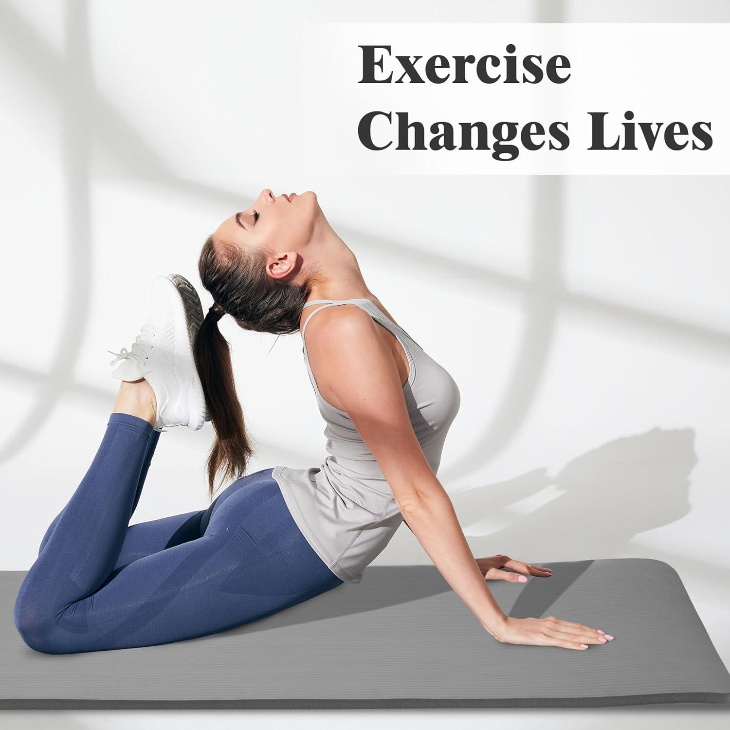 imageFitvids Yoga Mat 1Inch Extra Thick HighDensity Exercise Mat with NonSlip Surface ampamp Carry Strap for Men ampamp Women TearResistant Pilates Workout Mat for Home Gym Floor FitnessGraphite