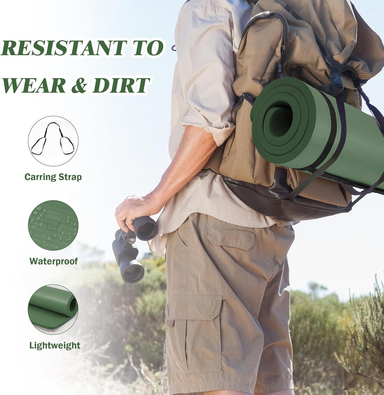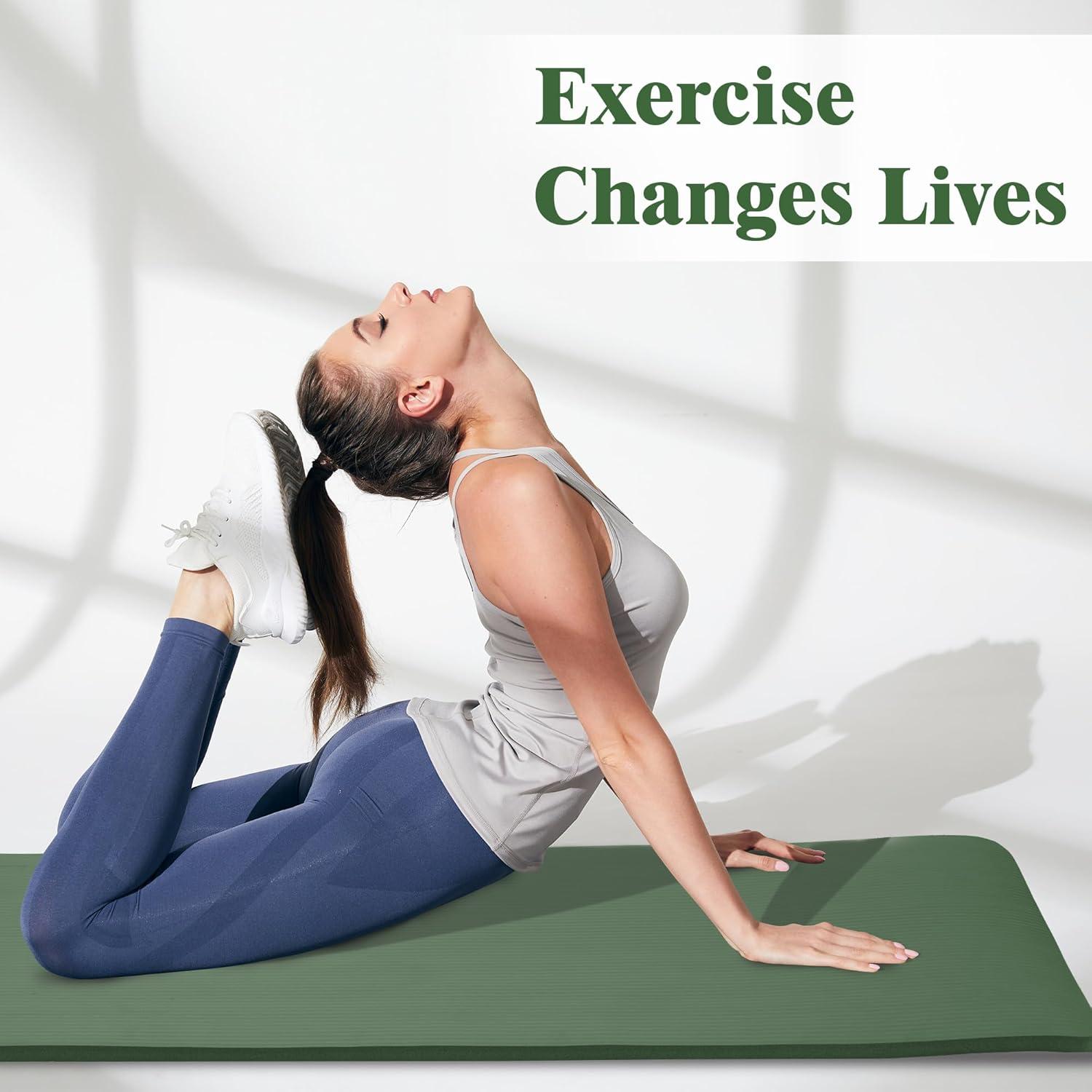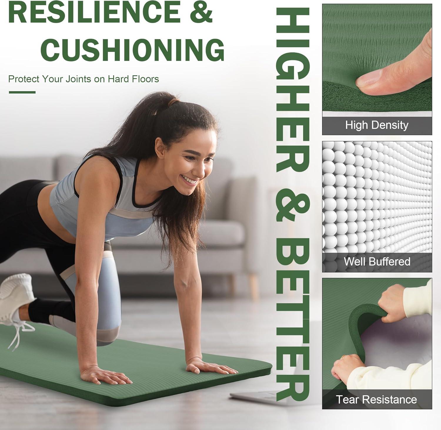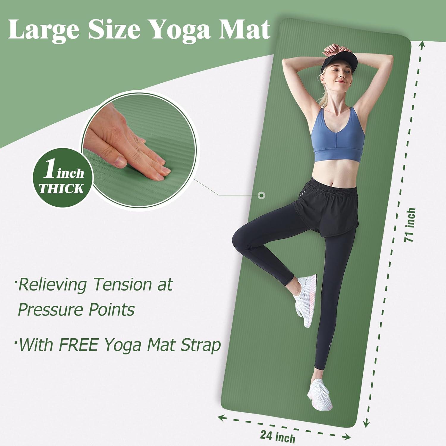 imageFitvids Yoga Mat 1Inch Extra Thick HighDensity Exercise Mat with NonSlip Surface ampamp Carry Strap for Men ampamp Women TearResistant Pilates Workout Mat for Home Gym Floor FitnessGreen Jasper