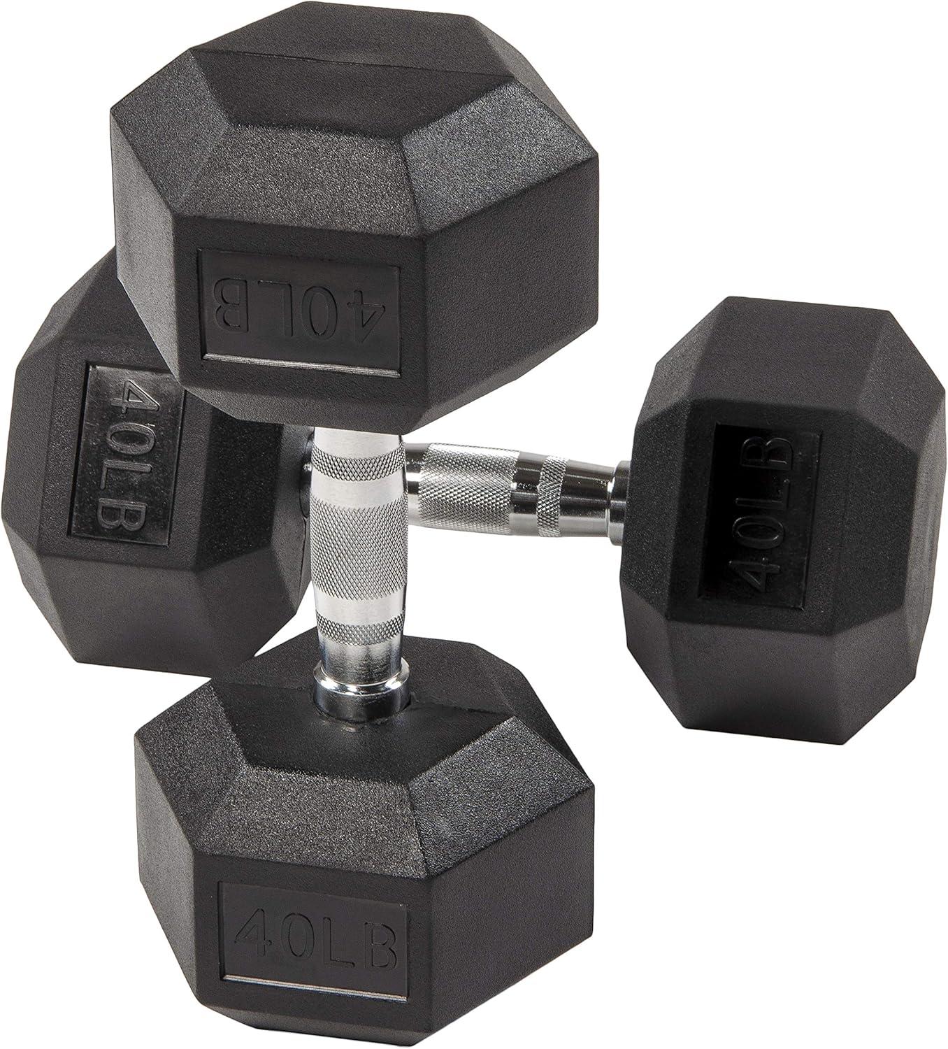 Hex Dumbbells Rubber Coated Hand Weights for Exercises and Fitness Home Gym, Single(Pair - 30LB)